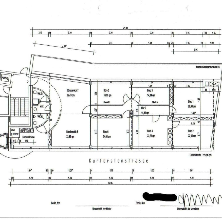Zur Vermietung steht eine gepflegte Gewerbe- bzw. Bürofläche mit ca. 226 m² im 3. Obergeschoss eines etablierten Geschäftshauses in der Kurfürstenstraße in Berlin-Charlottenburg. Die Fläche eignet sich ideal für Büro-, Agentur- oder dienstleistungsorientierte Nutzungen.
