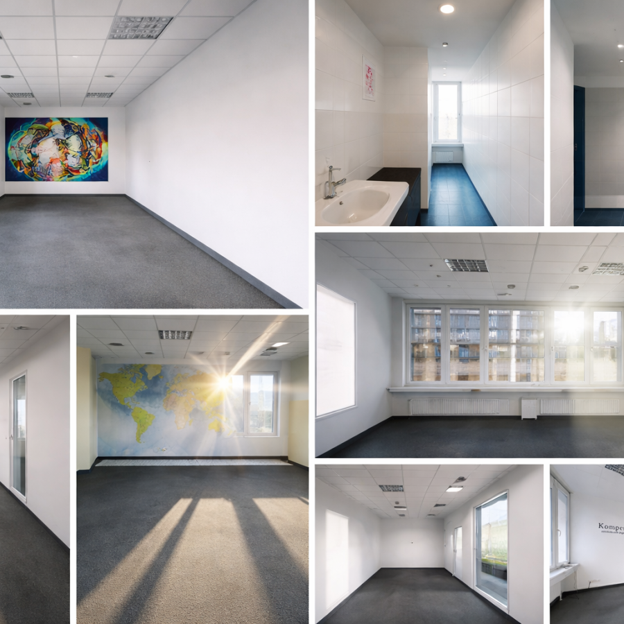 Die Einheit verfügt über einen funktionalen und flexibel nutzbaren Grundriss mit mehreren Büroräumen sowie offen gestalteten Bereichen. Große Fensterflächen sorgen für eine gute natürliche Belichtung und eine angenehme Arbeitsatmosphäre.