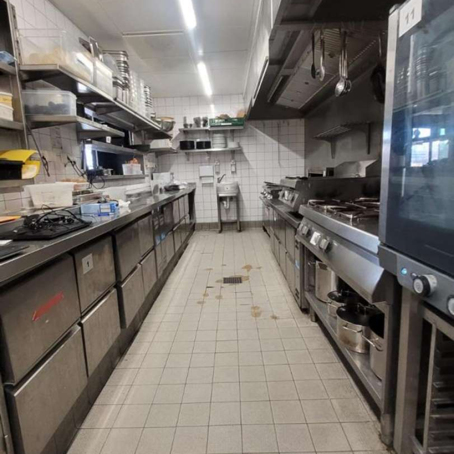 Die Fläche befindet sich in einem hochwertigen Zustand und bietet eine moderne Infrastruktur mit vorhandenen Anschlüssen für eine gastronomische Nutzung.