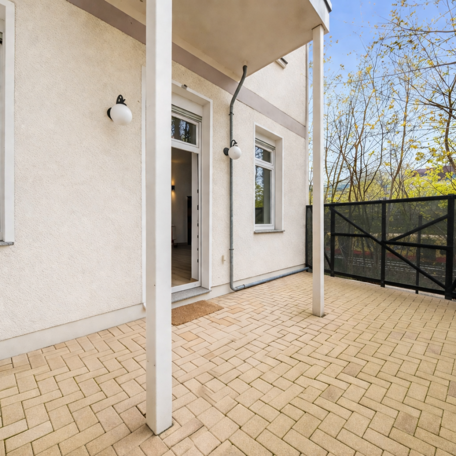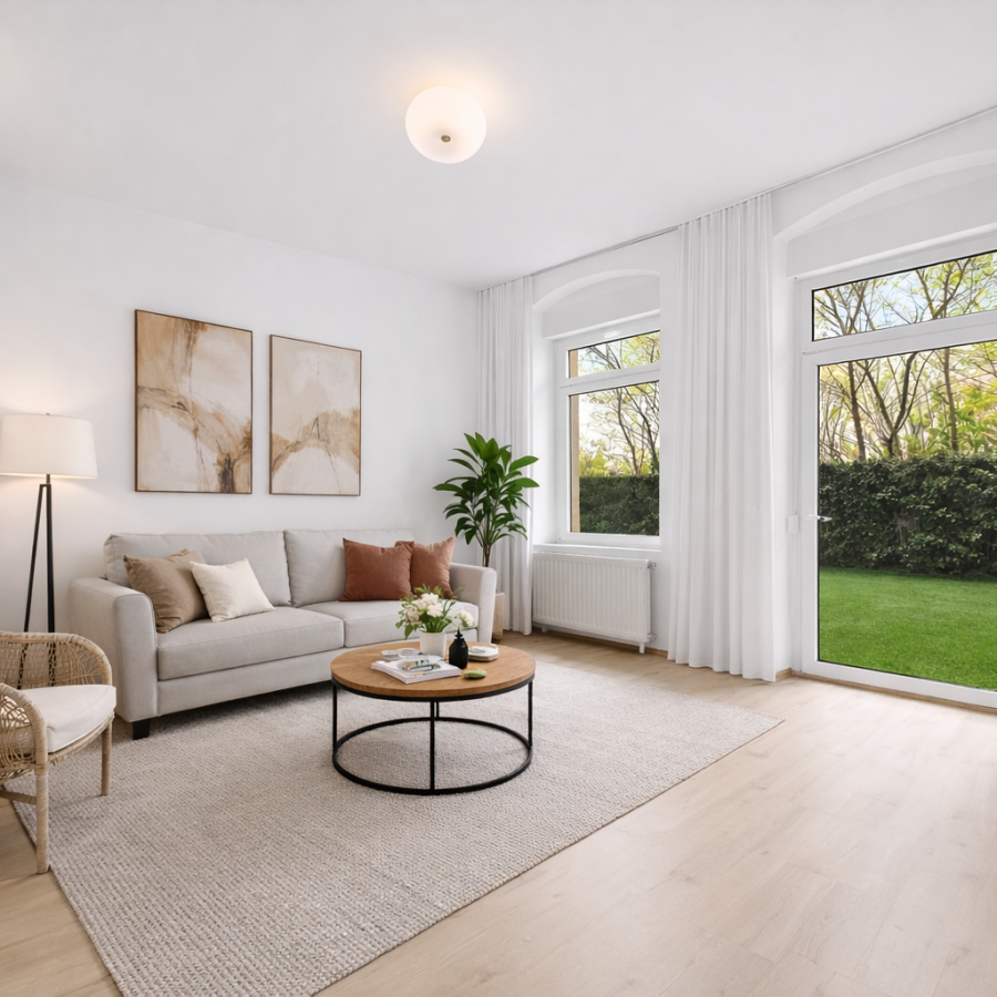 Diese charmante Erdgeschosswohnung überzeugt mit einem durchdachten Grundriss und bietet auf ca. 50 m² alles, was das Wohnen in der Stadt angenehm macht. Das helle Wohnzimmer geht nahtlos in die private Terrasse über, die dank ihrer geschützten Lage vollständig vor fremden Blicken abgeschirmt ist – ein seltenes Privileg mitten im Herzen der City West. Hier lässt sich der Berliner Alltag in Ruhe genießen, ob beim Frühstück im Freien oder einem entspannten Abend im Grünen.