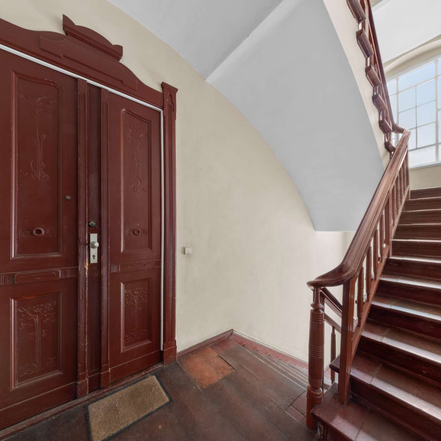 Die Wohnung befindet sich im 3. Obergeschoss eines klassischen Berliner Altbaus in der Elsenstraße 108. Der Zugang erfolgt über das Treppenhaus des Gebäudes. Im Innenhof stehen Abstellmöglichkeiten für Fahrräder zur Verfügung.