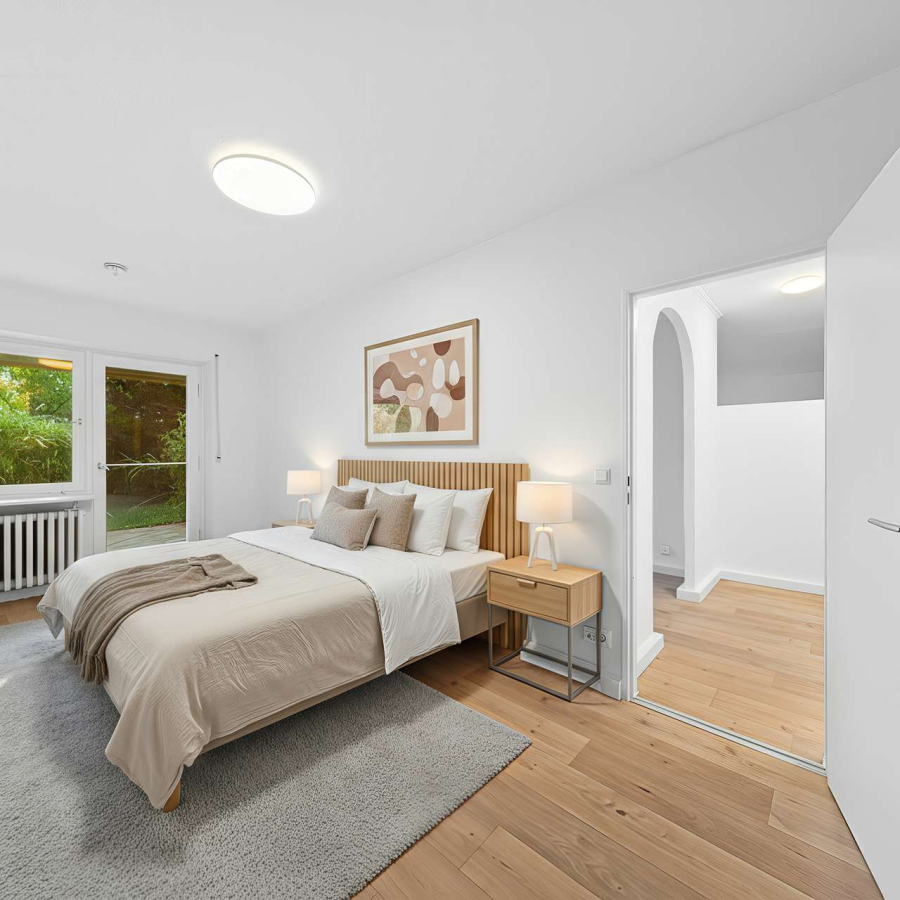 Die Wohnung erstreckt sich über eine großzügige Gartenfläche von 300 m², die zum Entspannen und Genießen der Natur einlädt. Der barrierefreie Zugang gewährleistet eine einfache und komfortable Nutzung für alle Bewohner.