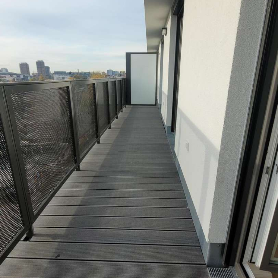 Der moderne Neubau ist bequem über einen Aufzug erreichbar und überzeugt durch klare Architektur, hochwertige Bauweise und eine helle, freundliche Atmosphäre. Der Balkon lädt zum Entspannen im Freien ein und bietet einen schönen Ausblick über die Dächer der Umgebung – perfekt, um den Tag ruhig ausklingen zu lassen.