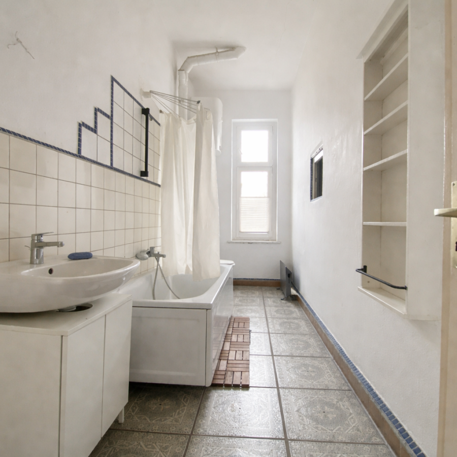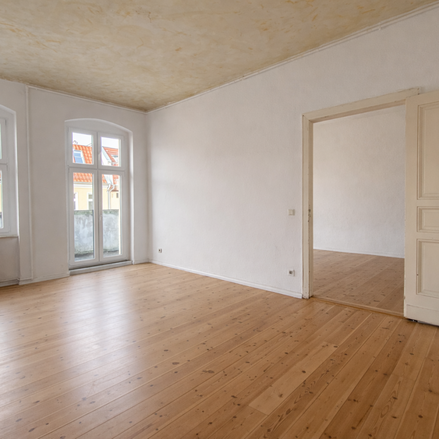 Vom Flur aus gelangen Sie in die großzügige Wohnküche, das Wannenbad sowie in ein helles und weitläufiges Durchgangszimmer. Von dort aus erreichen Sie das zweite Zimmer, welches Zugang zum Balkon bietet. Eine geräumige Abstellkammer rundet das Raumangebot sinnvoll ab.