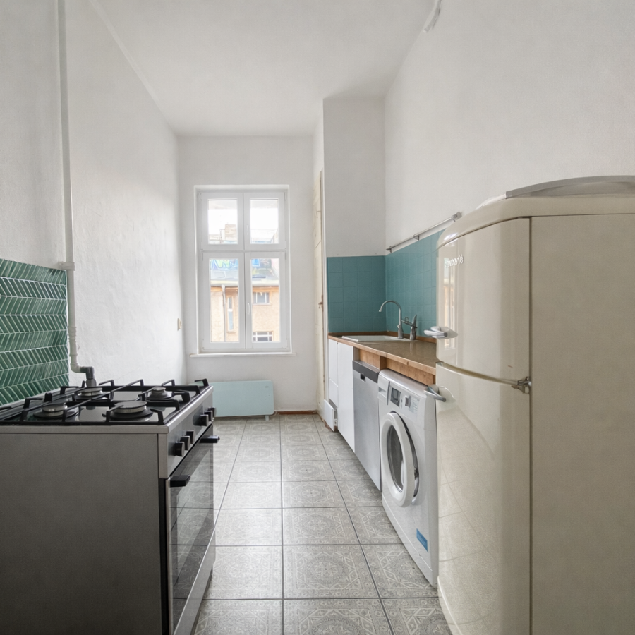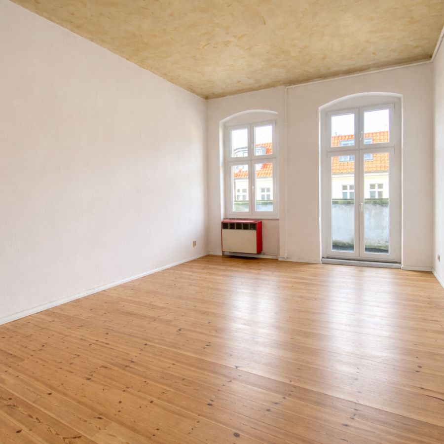Diese helle Wohnung im beliebten Friedrichshain befindet sich im 4. Obergeschoss des Vorderhauses eines klassischen Berliner Altbaus.
